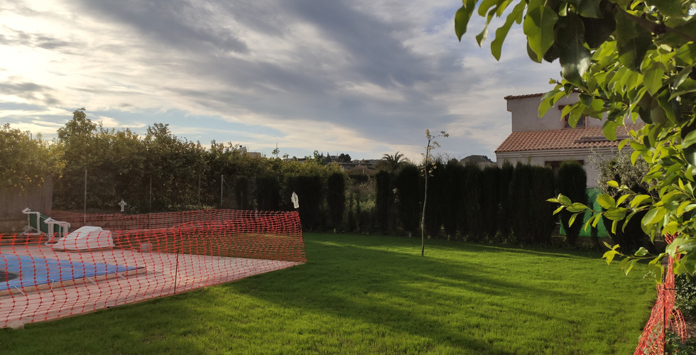 Lo segundo, no se tuvo en cuenta una valla que iba a atravesar el césped, no se hizo prueba de presión de agua y no se hizo un proyecto de riego. ¿Qué pasó? pues que nos encontramos zonas que no se regaban correctamente, incluso al poco tiempo hubo zonas que murieron... tuvieron que volver varias veces para poder dejarlo reparado.